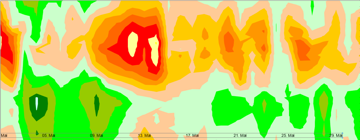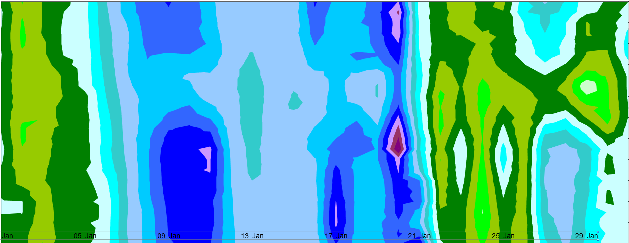 Isoplethendiagramm (Linien gleichen Zahlenwertes einer Größe) dienen dazu, um z. B. bei einem Thermoisoplethendiagramm die Tages- sowie die Jahresschwankungen der Lufttemperatur in einem Diagramm festzuhalten. So können Kälte- und Wärmeperioden schneller gedeutet werden. Durch die farbliche Abgrenzung der Isoplethen sind jahreszeitlich bedingte Veränderungen sichtbar. Wie werden die Diagramme erstellt bzw. was ist die Grundlage dieser. Es werden die Temperaturwerte zu jeder vollen Stunde eine Tages gesammelt und dies den ganzen Monat. Daraus wird dann diese Diagramm erstellt