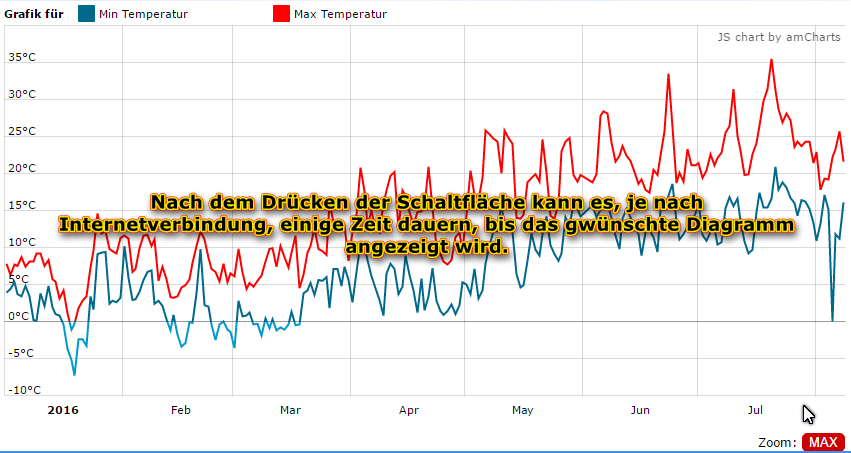 Diagramm - Jahresdurchschnittstemperatur berechnet auf den aktuellen Tag