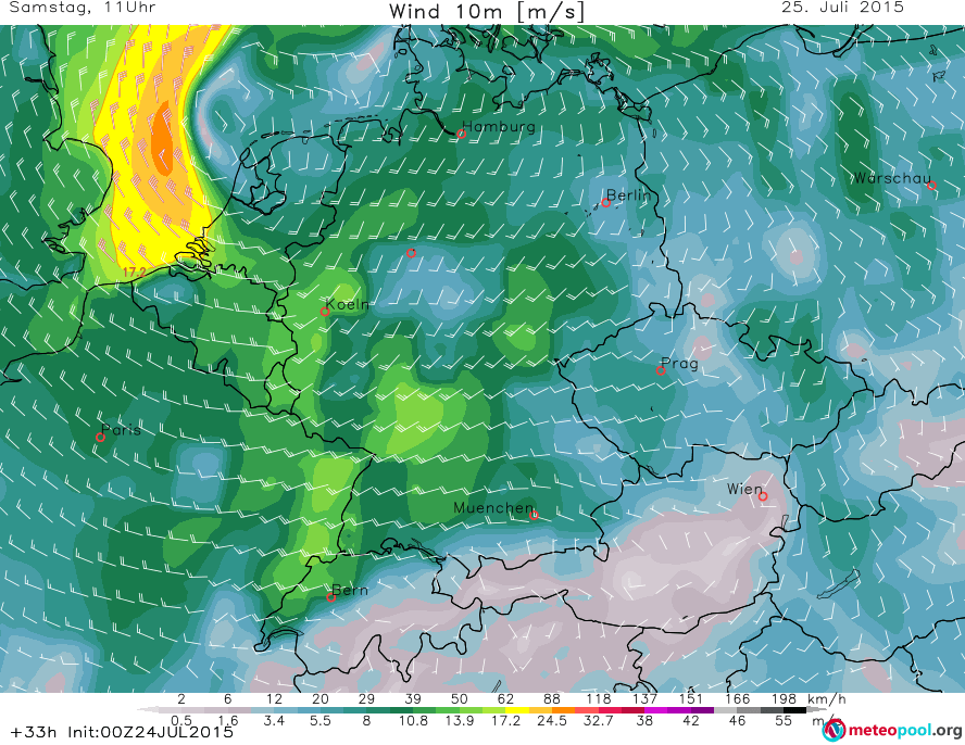 Entwicklung des Sturmtiefs am Samstag den