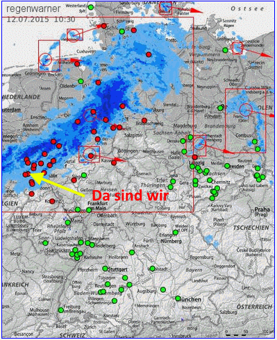 warten. Wenn man sich die unteren Bild des Regenradars anschaut könnte man meinen, dass es ordentlich bei uns geregnet
