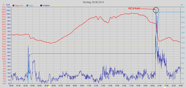 Rekordwert an Sturmböen reicher, es war eine Spitzenböe von 107,8km/h,