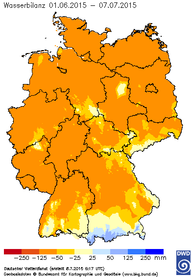 Waren es Anfang Juni noch 52% Niederschlag der fehlte, sind es jetzt