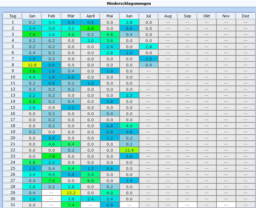 Zahlen aus. Von April bis heute fielen insgesamt 86mm Niederschlag. Nach
