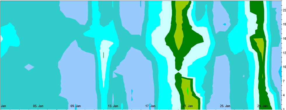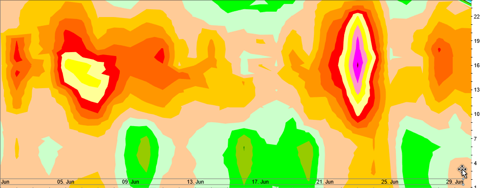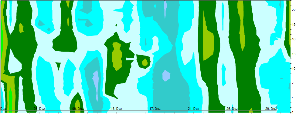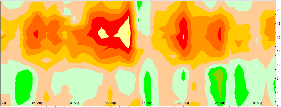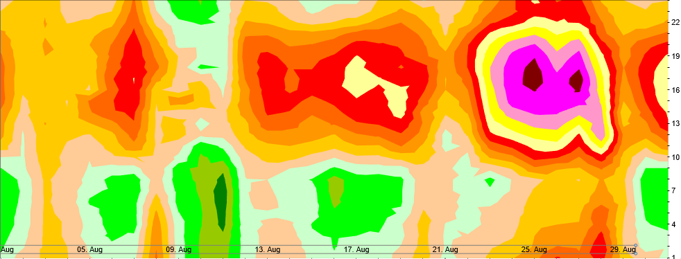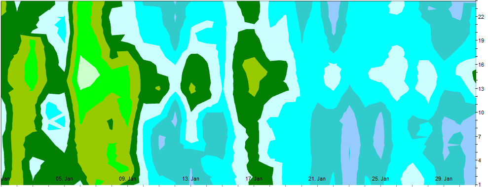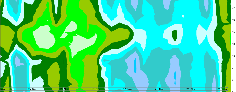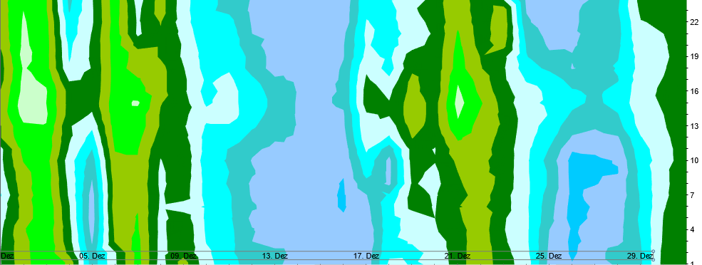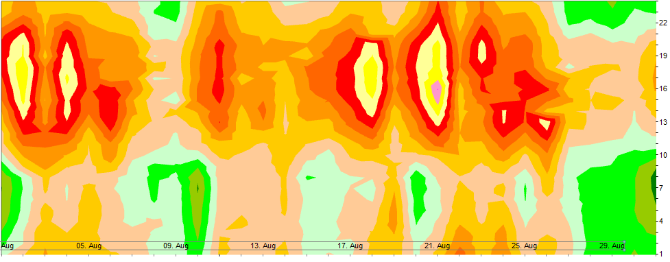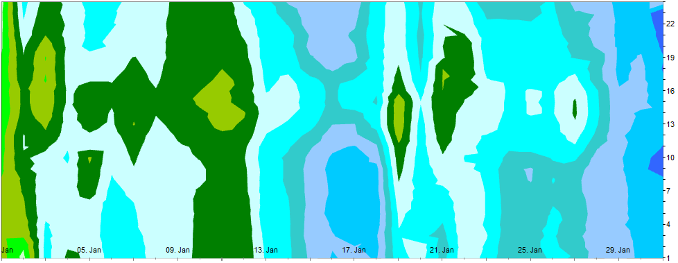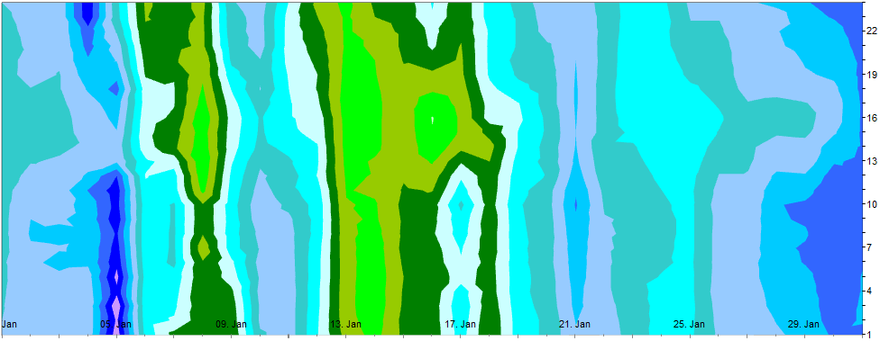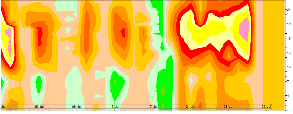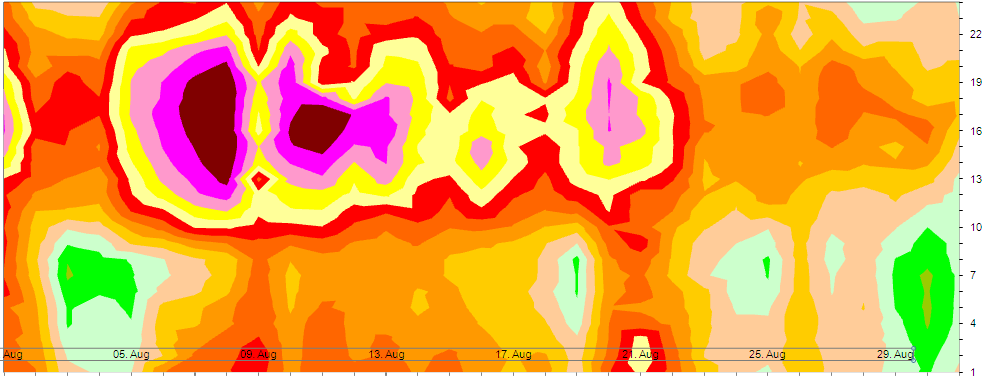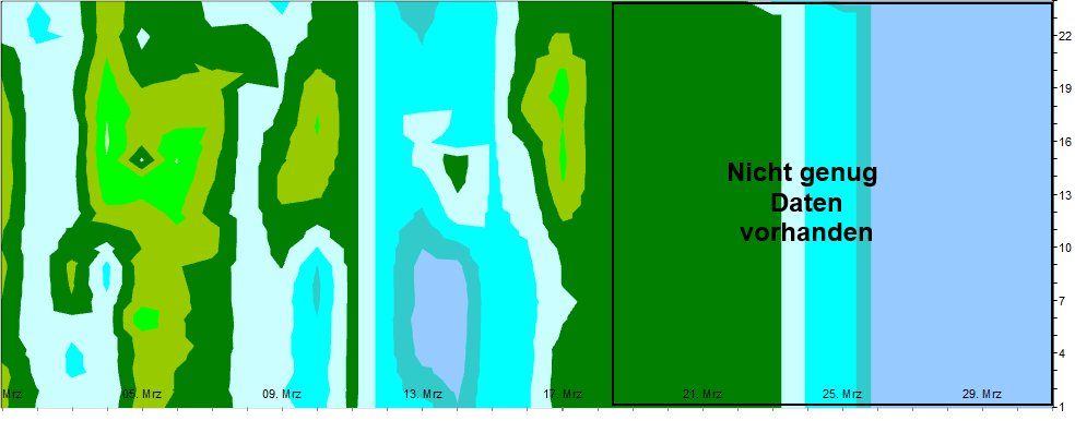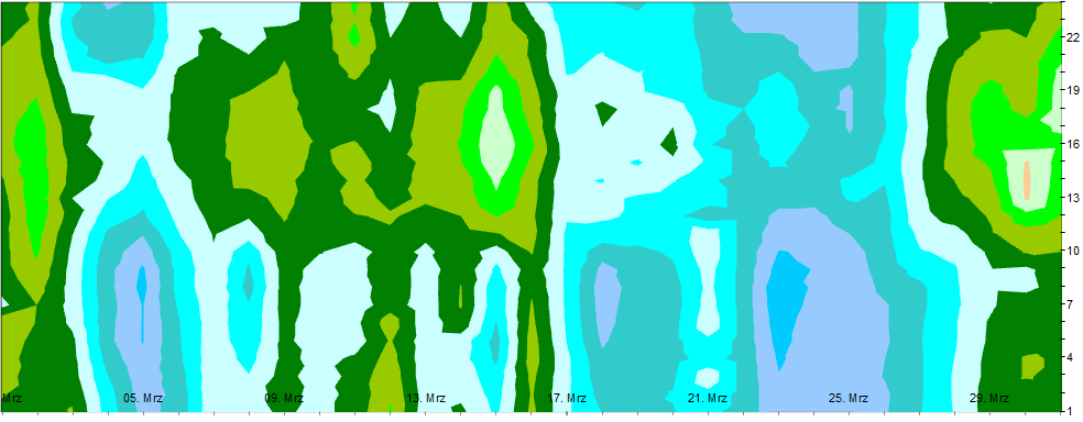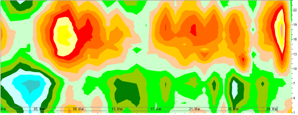 Isoplethendiagramm (Linien gleichen Zahlenwertes einer Größe) dienen dazu, um z. B. bei einem Thermoisoplethendiagramm die Tages- sowie die Jahresschwankungen der Lufttemperatur in einem Diagramm festzuhalten. So können Kälte- und Wärmeperioden schneller gedeutet werden. Durch die farbliche Abgrenzung der Isoplethen sind jahreszeitlich bedingte Veränderungen sichtbar. Wie werden die Diagramme erstellt bzw. was ist die Grundlage dieser. Es werden die Temperaturwerte zu jeder vollen Stunde eine Tages gesammelt und dies den ganzen Monat. Daraus wird dann diese Diagramm erstellt