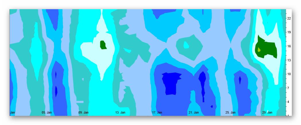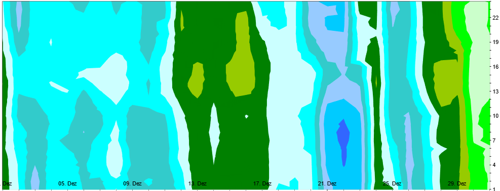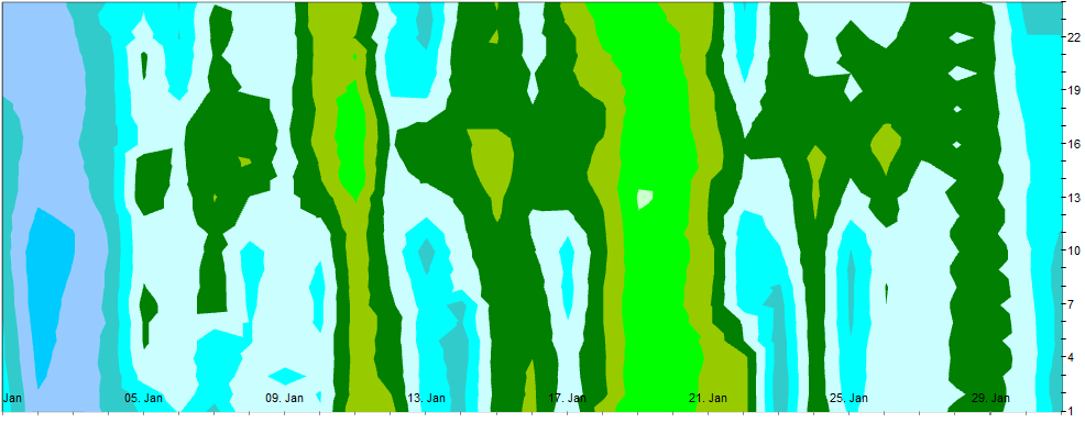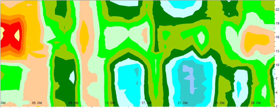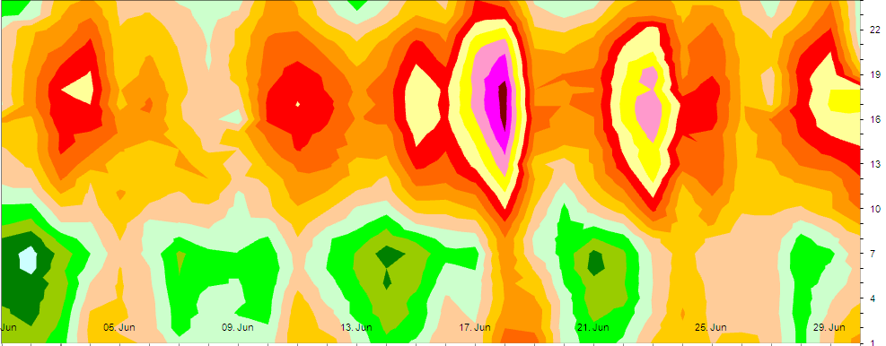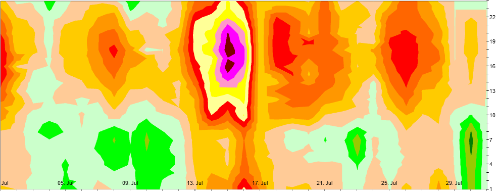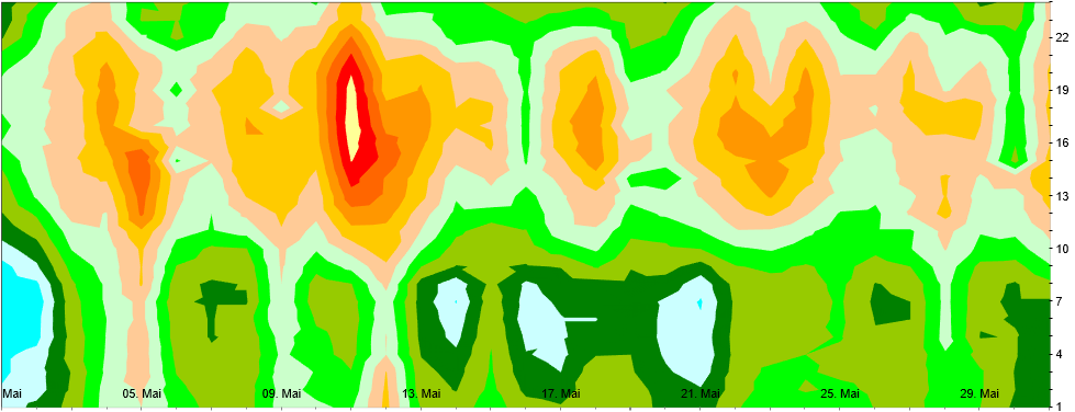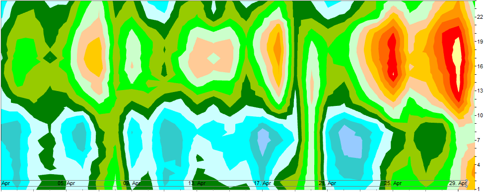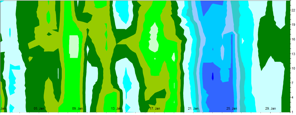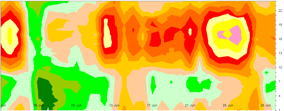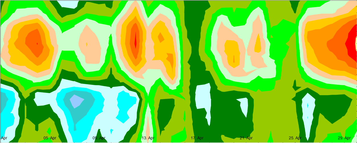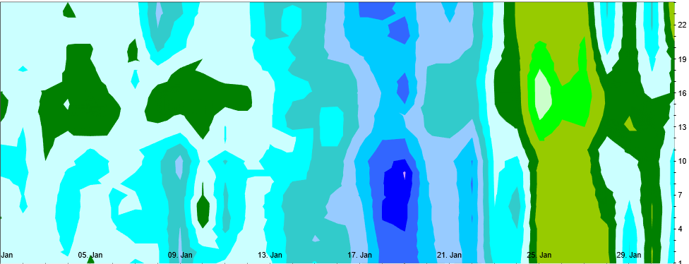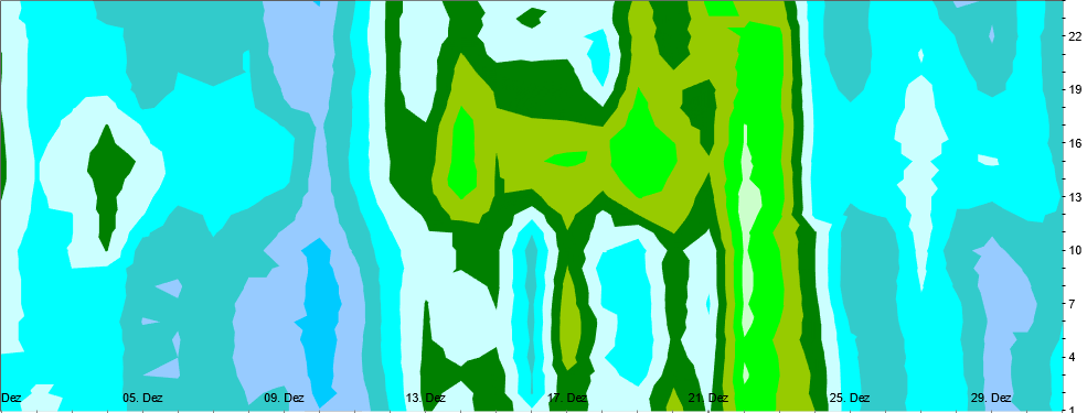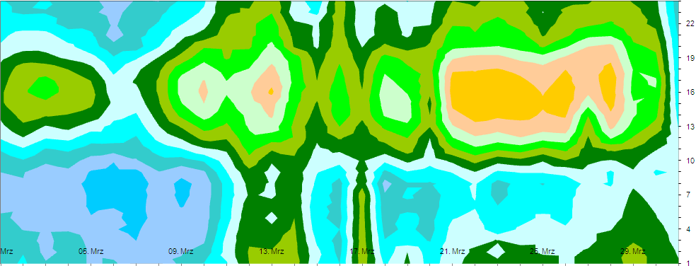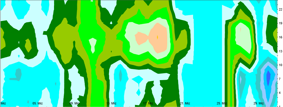 Isoplethendiagramm (Linien gleichen Zahlenwertes einer Größe) dienen dazu, um z. B. bei einem Thermoisoplethendiagramm die Tages- sowie die Jahresschwankungen der Lufttemperatur in einem Diagramm festzuhalten. So können Kälte- und Wärmeperioden schneller gedeutet werden. Durch die farbliche Abgrenzung der Isoplethen sind jahreszeitlich bedingte Veränderungen sichtbar. Wie werden die Diagramme erstellt bzw. was ist die Grundlage dieser. Es werden die Temperaturwerte zu jeder vollen Stunde eine Tages gesammelt und dies den ganzen Monat. Daraus wird dann diese Diagramm erstellt