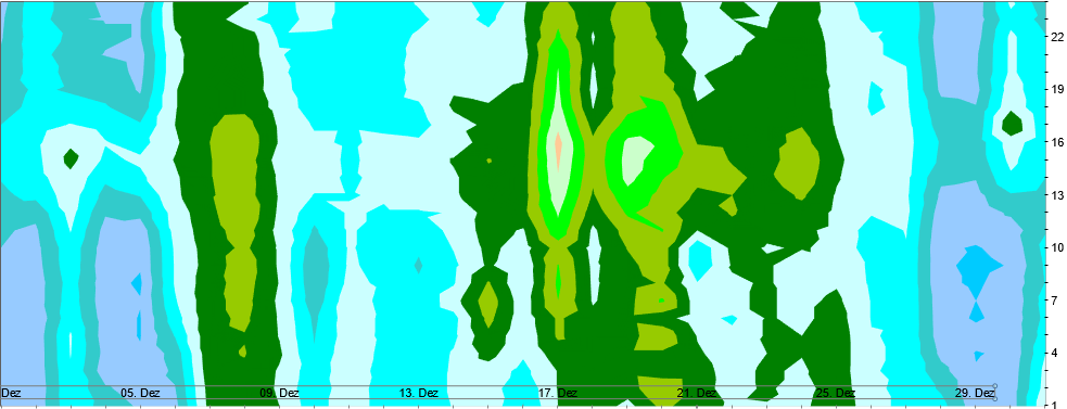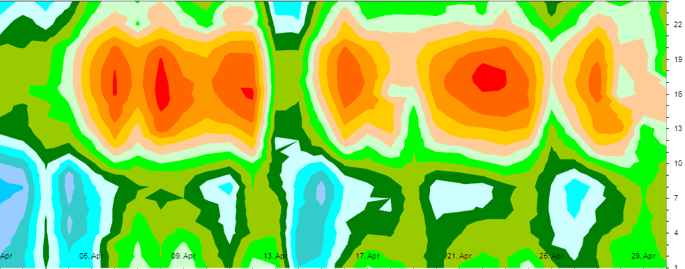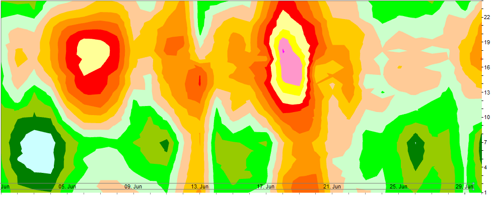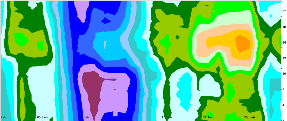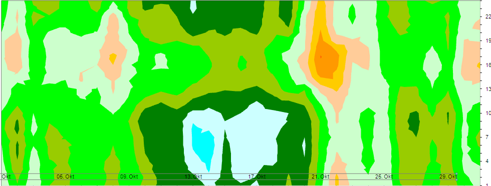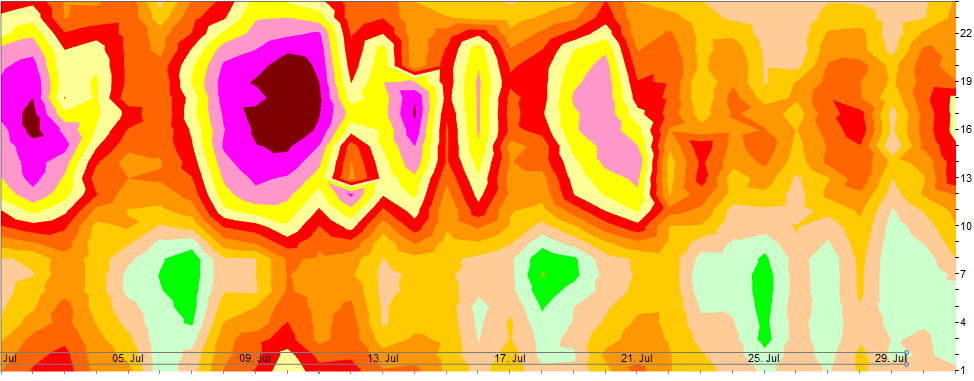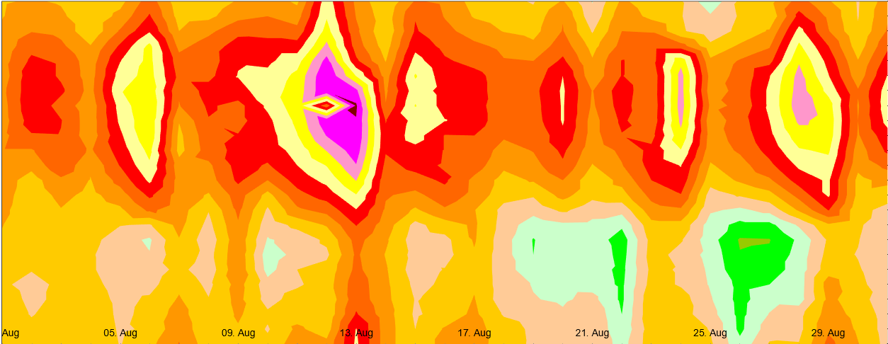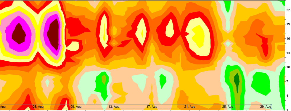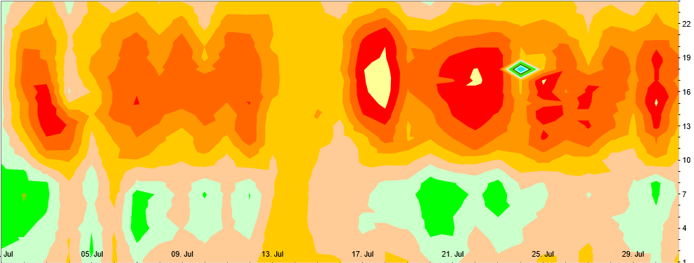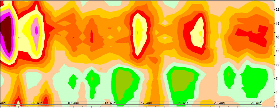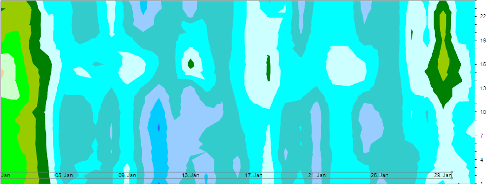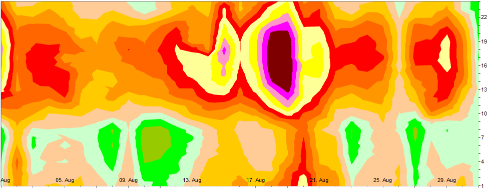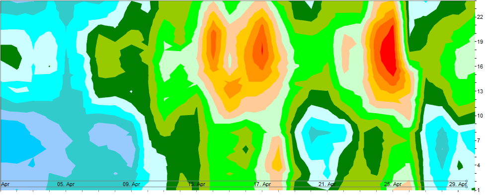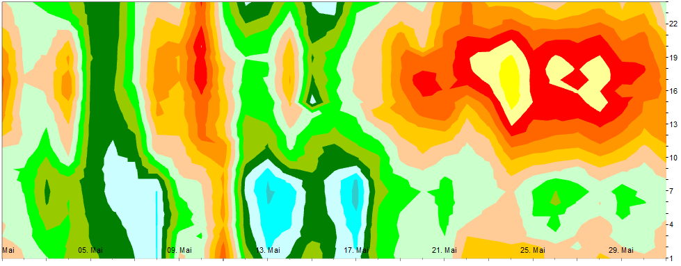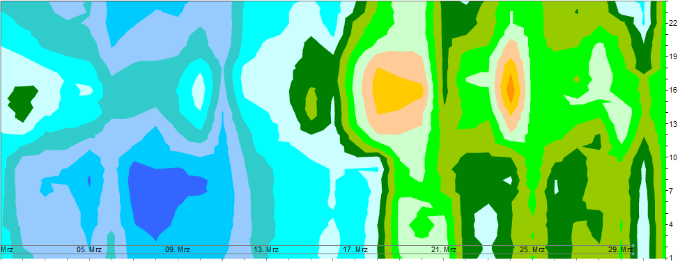 Isoplethendiagramm (Linien gleichen Zahlenwertes einer Größe) dienen dazu, um z. B. bei einem Thermoisoplethendiagramm die Tages- sowie die Jahresschwankungen der Lufttemperatur in einem Diagramm festzuhalten. So können Kälte- und Wärmeperioden schneller gedeutet werden. Durch die farbliche Abgrenzung der Isoplethen sind jahreszeitlich bedingte Veränderungen sichtbar. Wie werden die Diagramme erstellt bzw. was ist die Grundlage dieser. Es werden die Temperaturwerte zu jeder vollen Stunde eine Tages gesammelt und dies den ganzen Monat. Daraus wird dann diese Diagramm erstellt