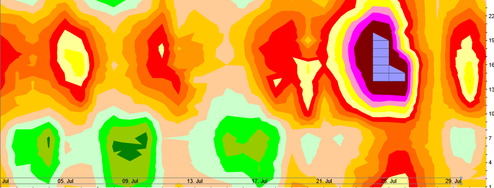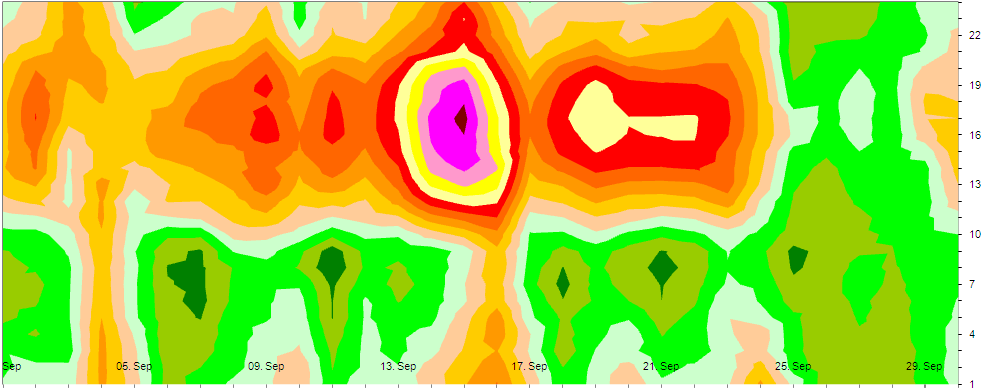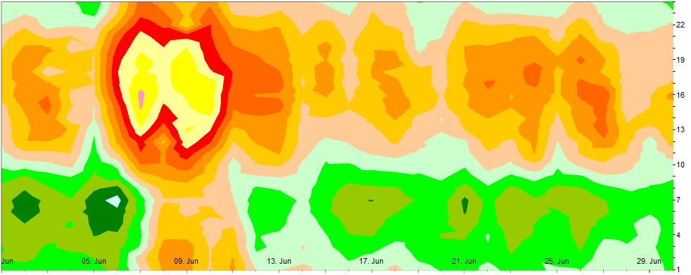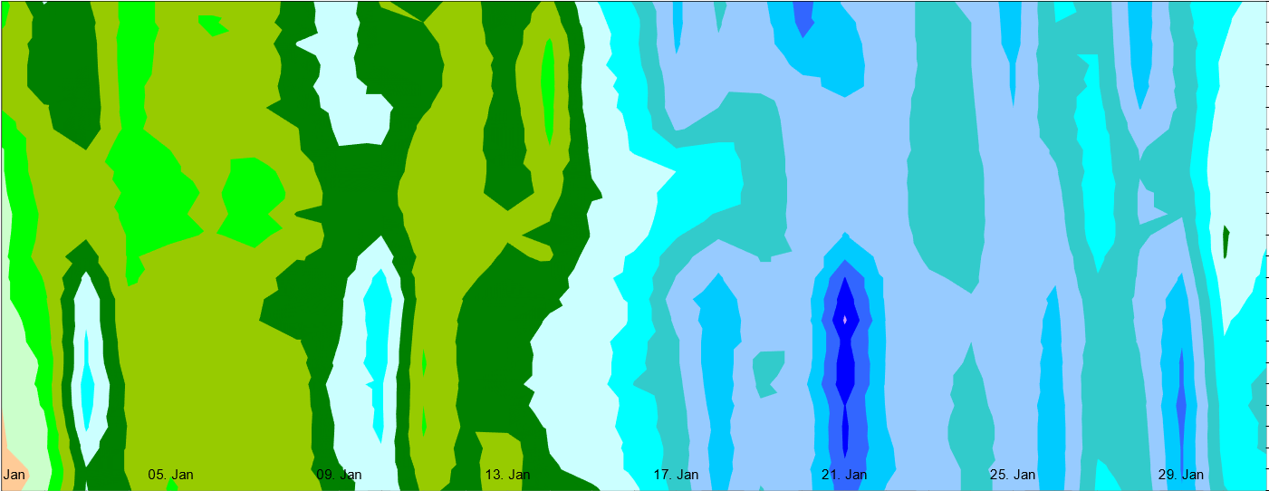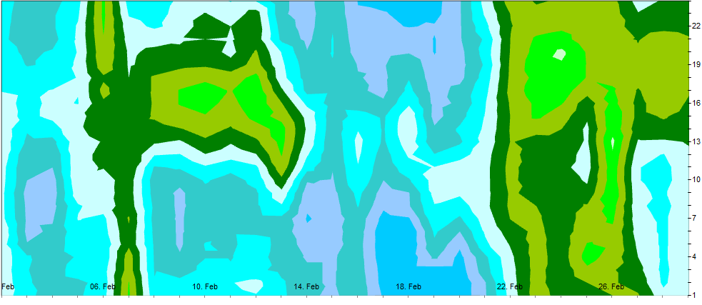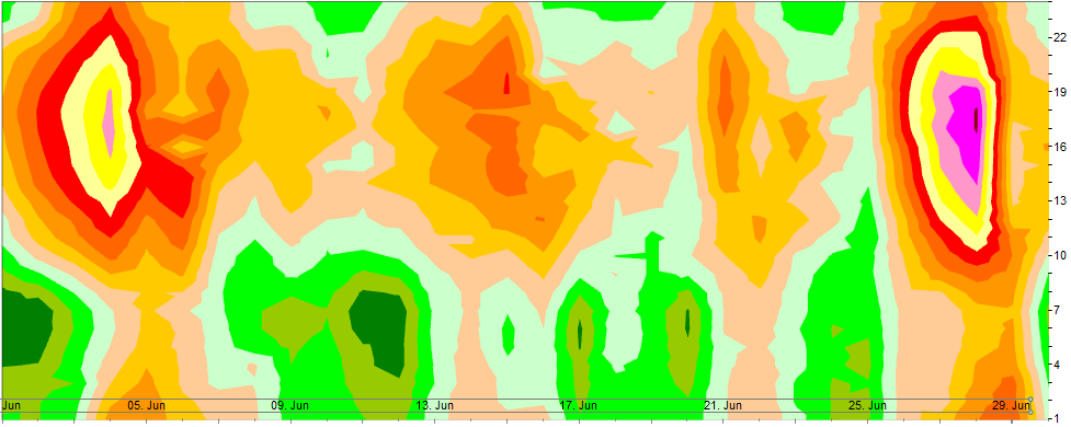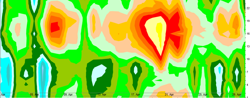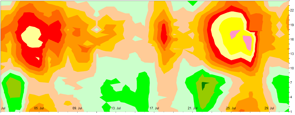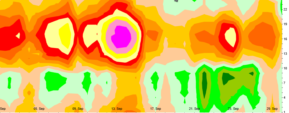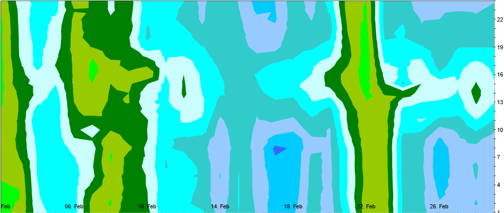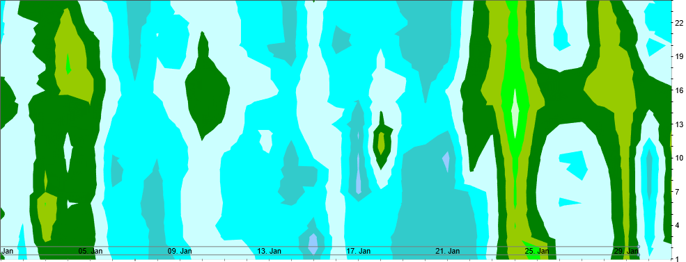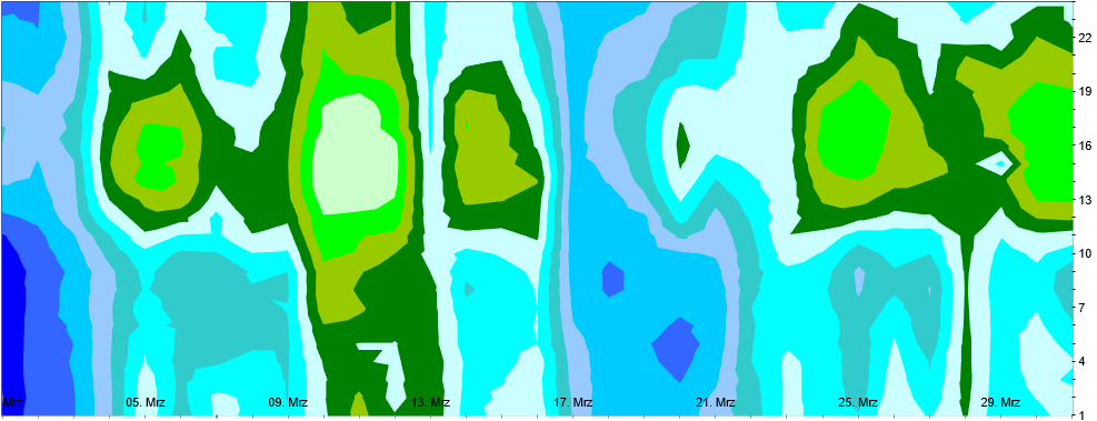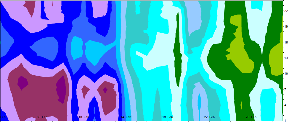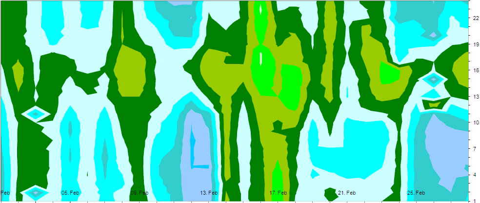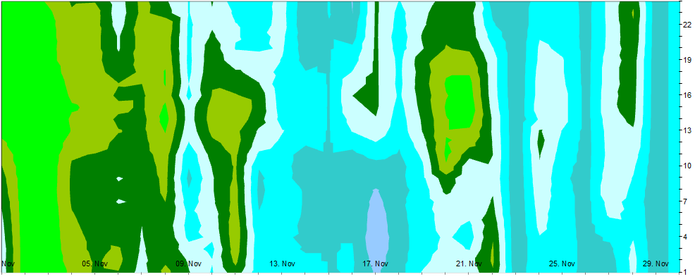 Isoplethendiagramm (Linien gleichen Zahlenwertes einer Größe) dienen dazu, um z. B. bei einem Thermoisoplethendiagramm die Tages- sowie die Jahresschwankungen der Lufttemperatur in einem Diagramm festzuhalten. So können Kälte- und Wärmeperioden schneller gedeutet werden. Durch die farbliche Abgrenzung der Isoplethen sind jahreszeitlich bedingte Veränderungen sichtbar. Wie werden die Diagramme erstellt bzw. was ist die Grundlage dieser. Es werden die Temperaturwerte zu jeder vollen Stunde eine Tages gesammelt und dies den ganzen Monat. Daraus wird dann diese Diagramm erstellt