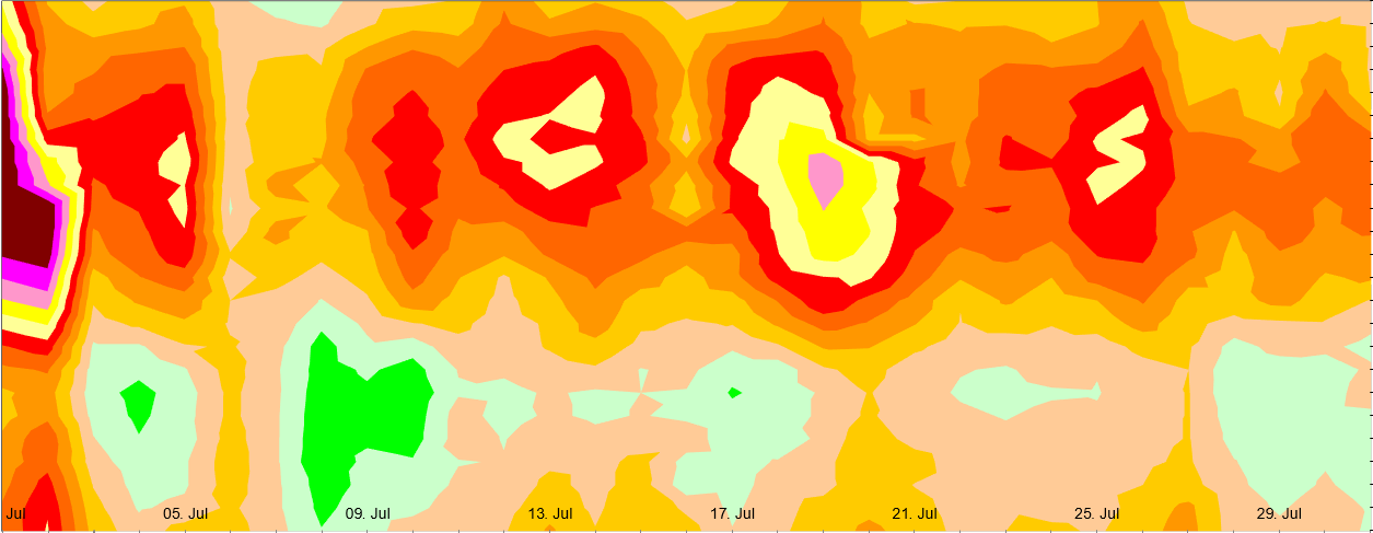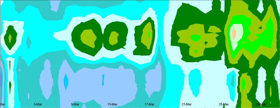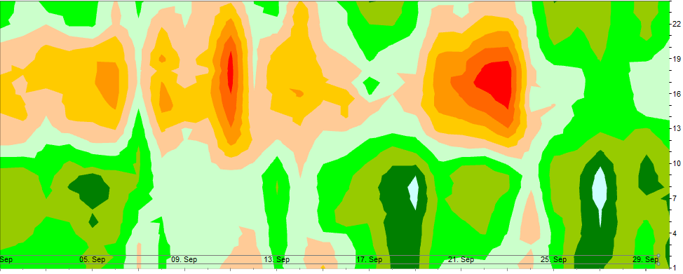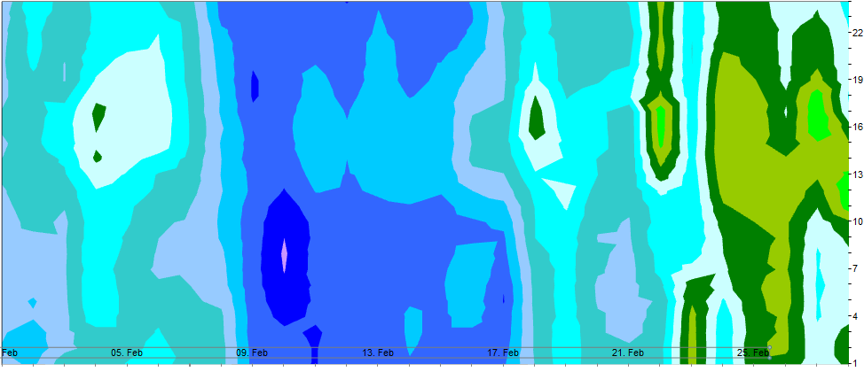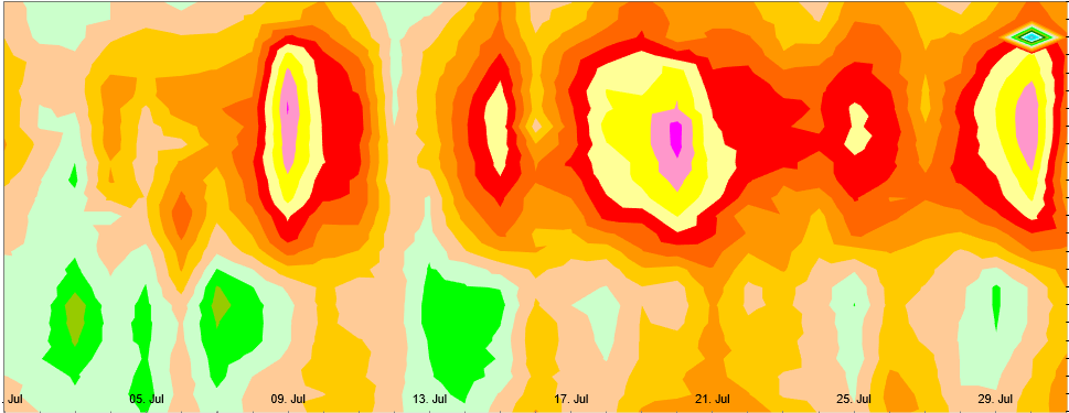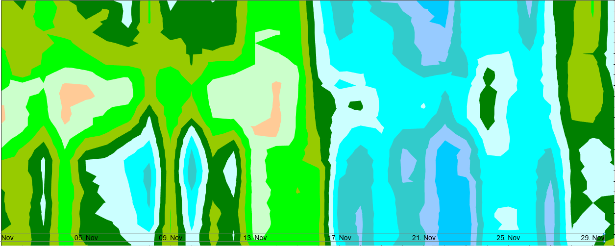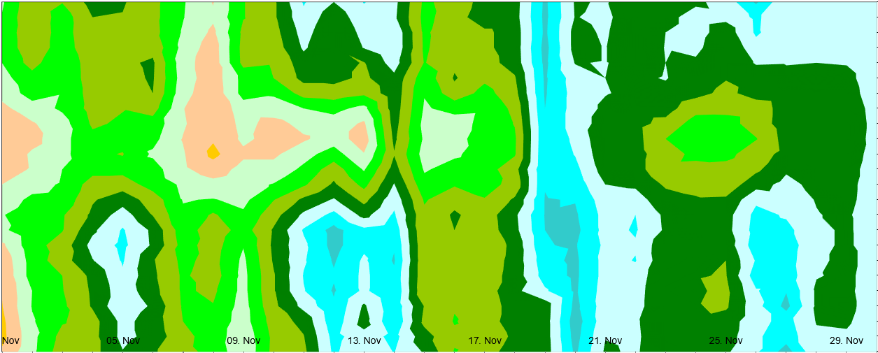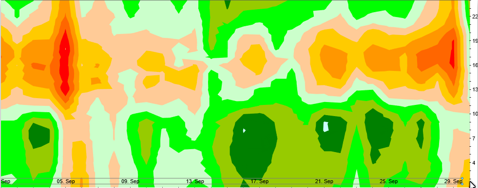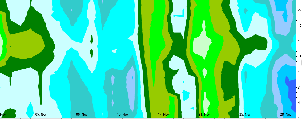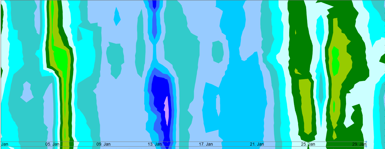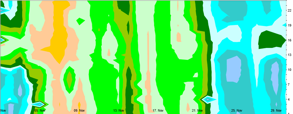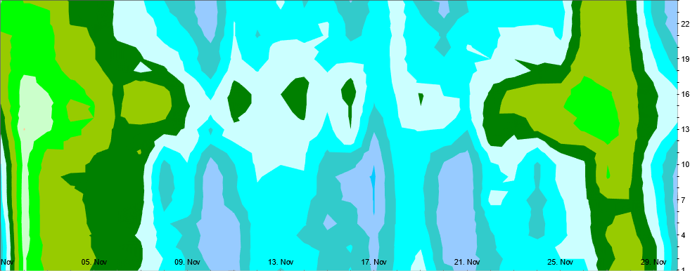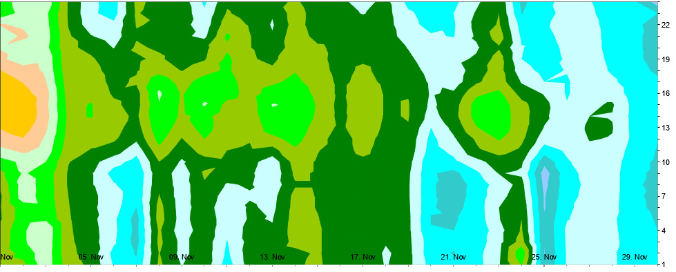Isoplethendiagramm (Linien gleichen Zahlenwertes einer Größe) dienen dazu, um z. B. bei einem Thermoisoplethendiagramm die Tages- sowie die Jahresschwankungen der Lufttemperatur in einem Diagramm festzuhalten. So können Kälte- und Wärmeperioden schneller gedeutet werden. Durch die farbliche Abgrenzung der Isoplethen sind jahreszeitlich bedingte Veränderungen sichtbar. Wie werden die Diagramme erstellt bzw. was ist die Grundlage dieser. Es werden die Temperaturwerte zu jeder vollen Stunde eine Tages gesammelt und dies den ganzen Monat. Daraus wird dann diese Diagramm erstellt